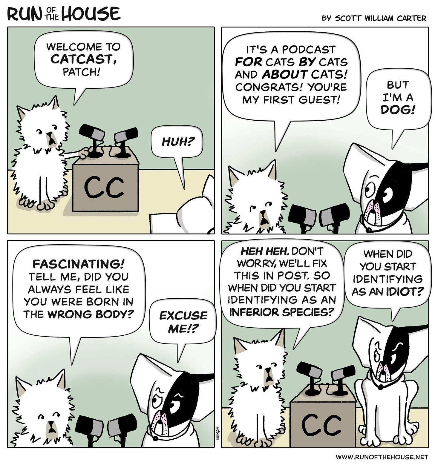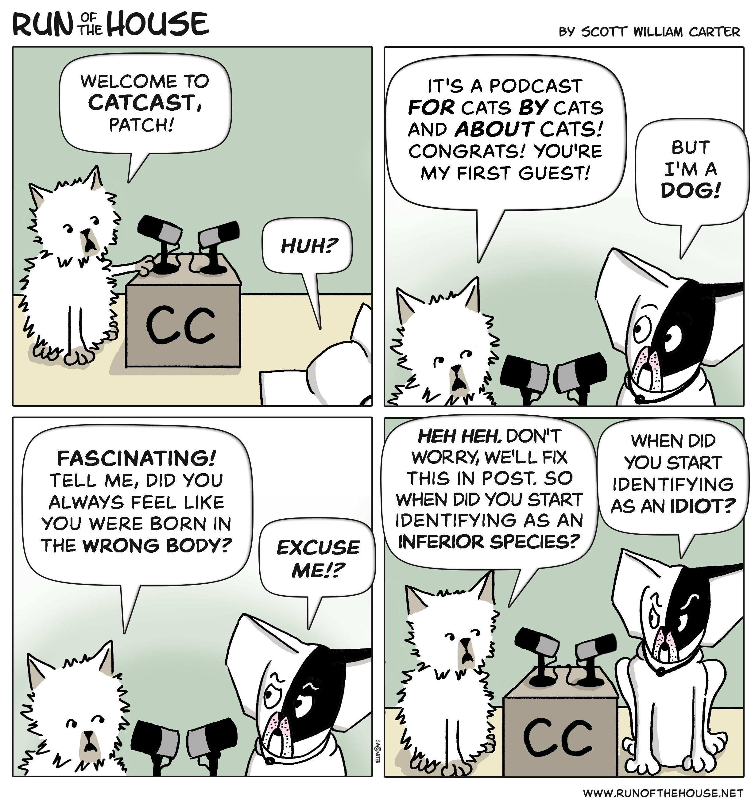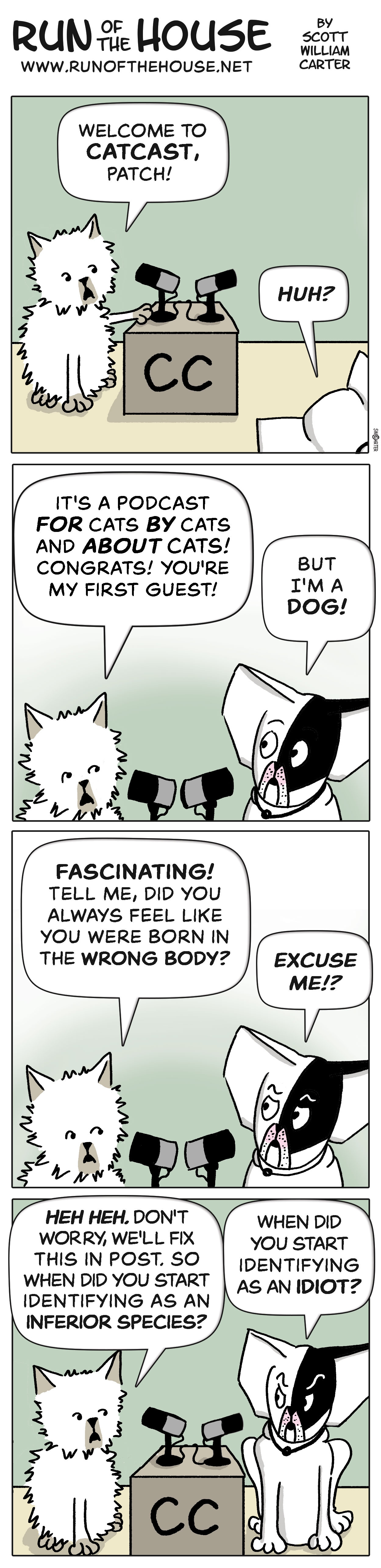 Hi, I’m Scott William Carter, author of cartoons, novels, short stories, and other things. If you’re receiving this by email, you’re either subscribed to the Run of the House cartoon strip, or it was forwarded to you. Previously published comics are available at www.runofthehouse.net.