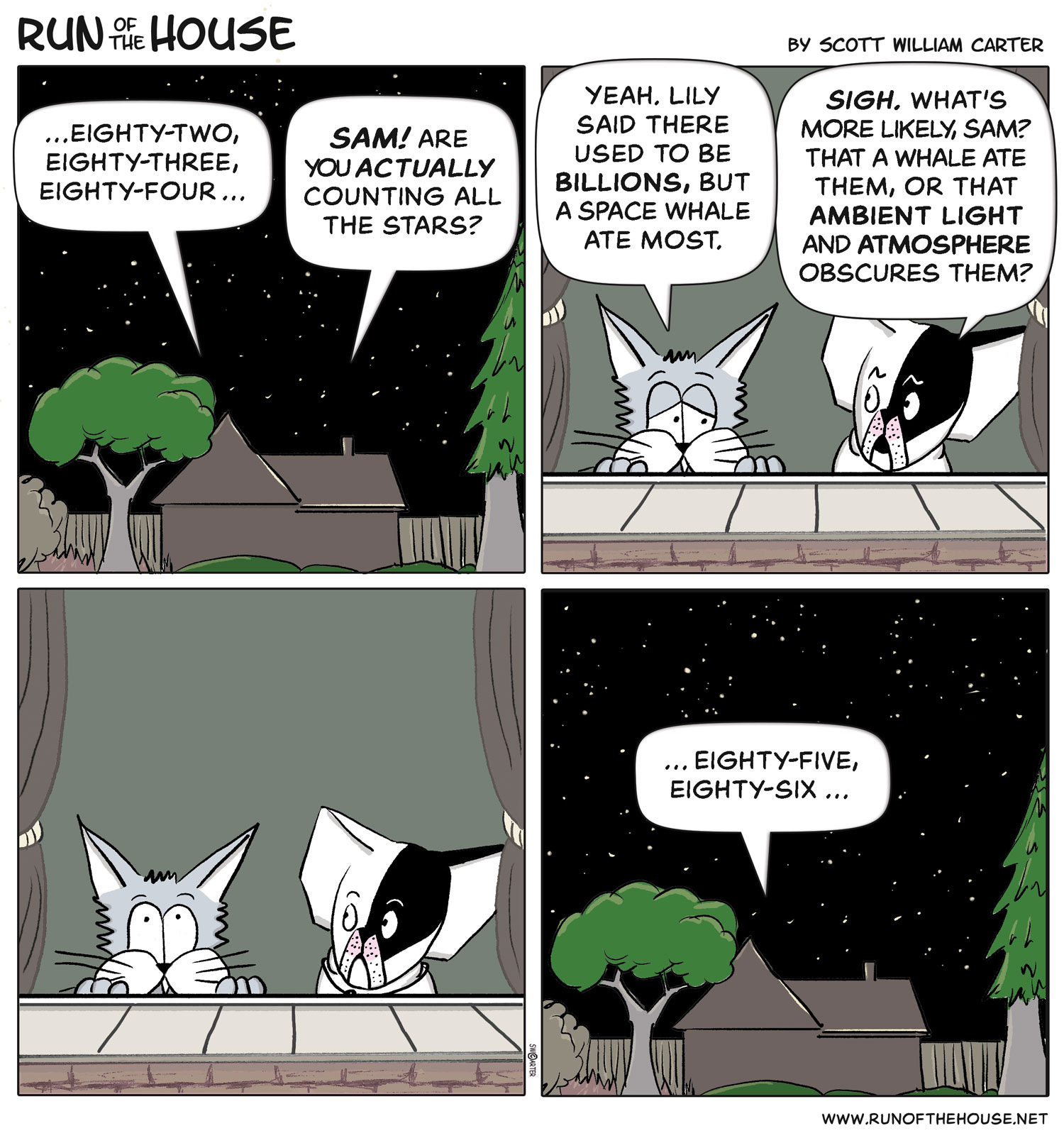 Hi, I’m Scott William Carter, author of cartoons, novels, short stories, and other things. If you’re receiving this by email, you’re either subscribed to the Run of the House cartoon strip, or it was forwarded to you. Previously published comics are available at www.runofthehouse.net.