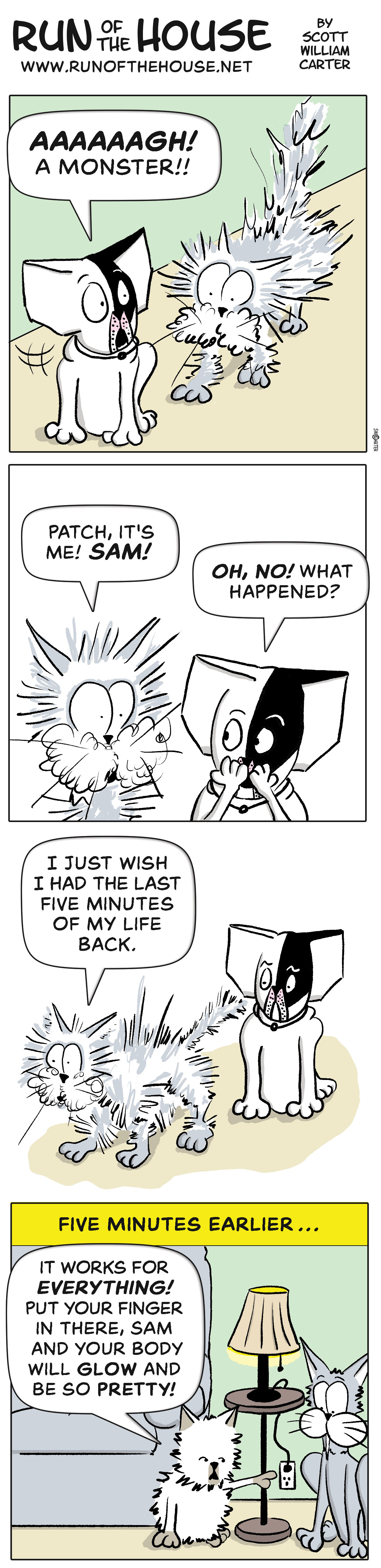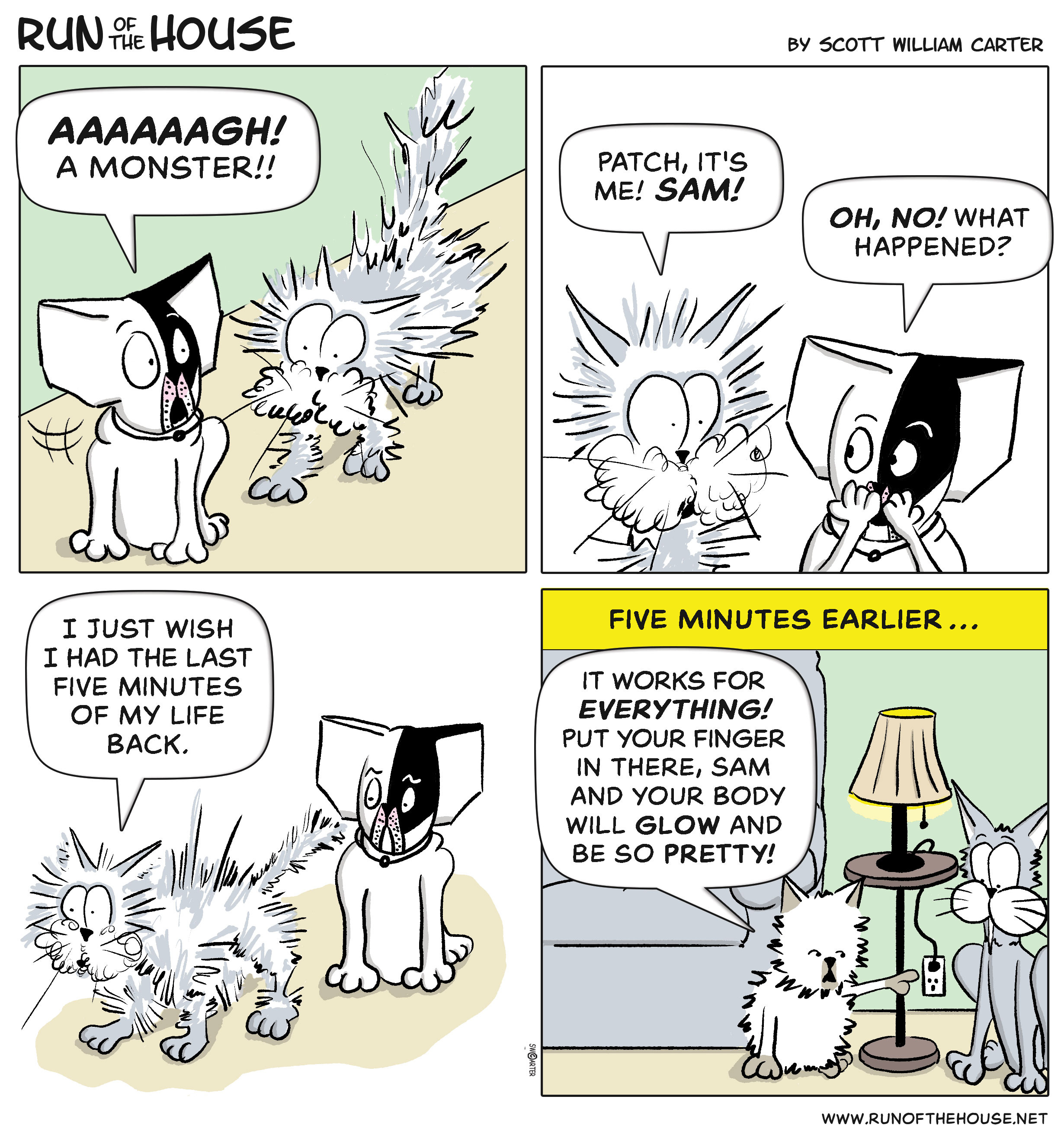 Hi, I’m Scott William Carter, author of cartoons, novels, short stories, and other things. If you’re receiving this by email, you’re either subscribed to the Run of the House cartoon strip, or it was forwarded to you. Previously published comics are available at www.runofthehouse.net.