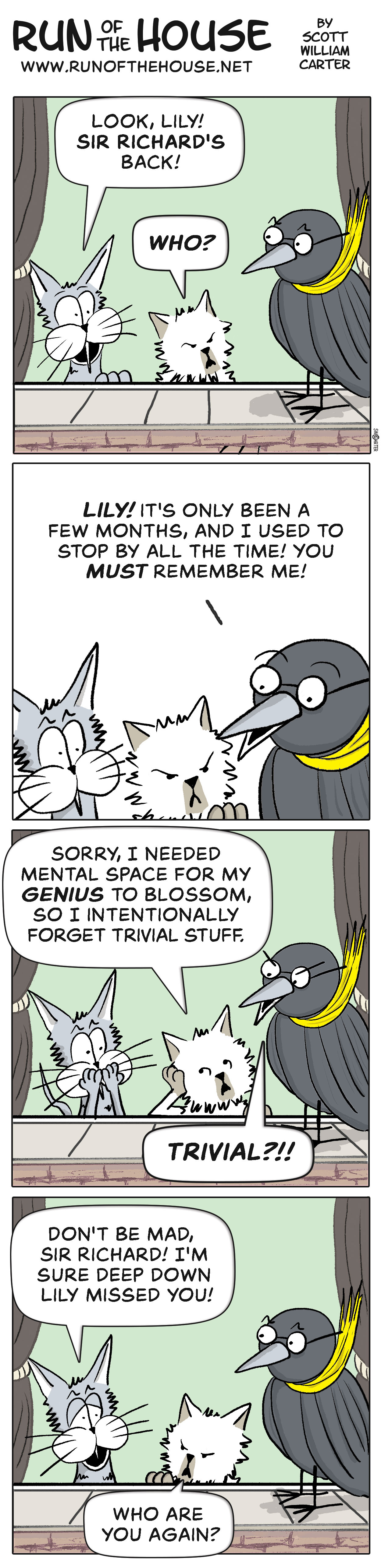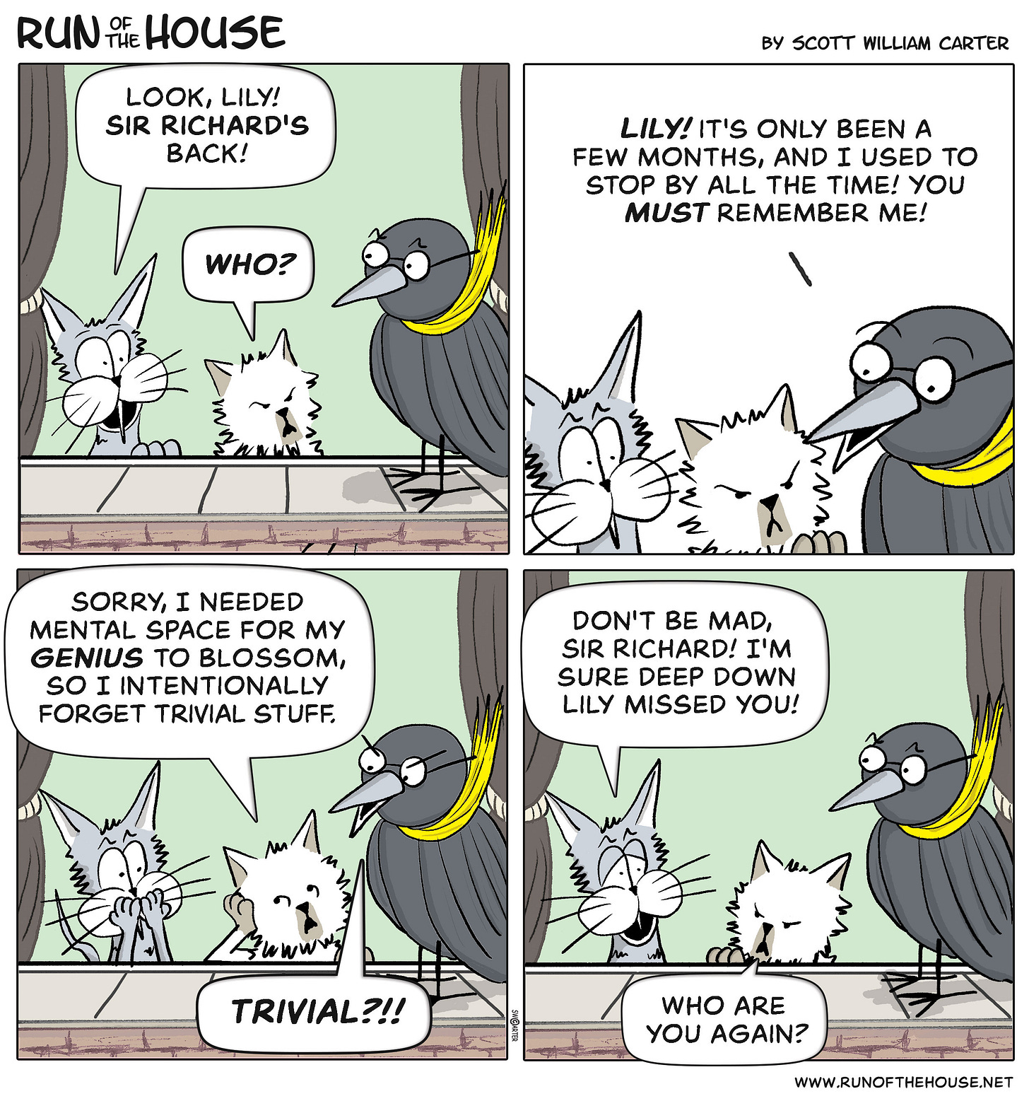 Hi, I’m Scott William Carter, author of cartoons, novels, short stories, and other things. If you’re receiving this by email, you’re either subscribed to the Run of the House cartoon strip, or it was forwarded to you. Previously published comics are available at www.runofthehouse.net.
