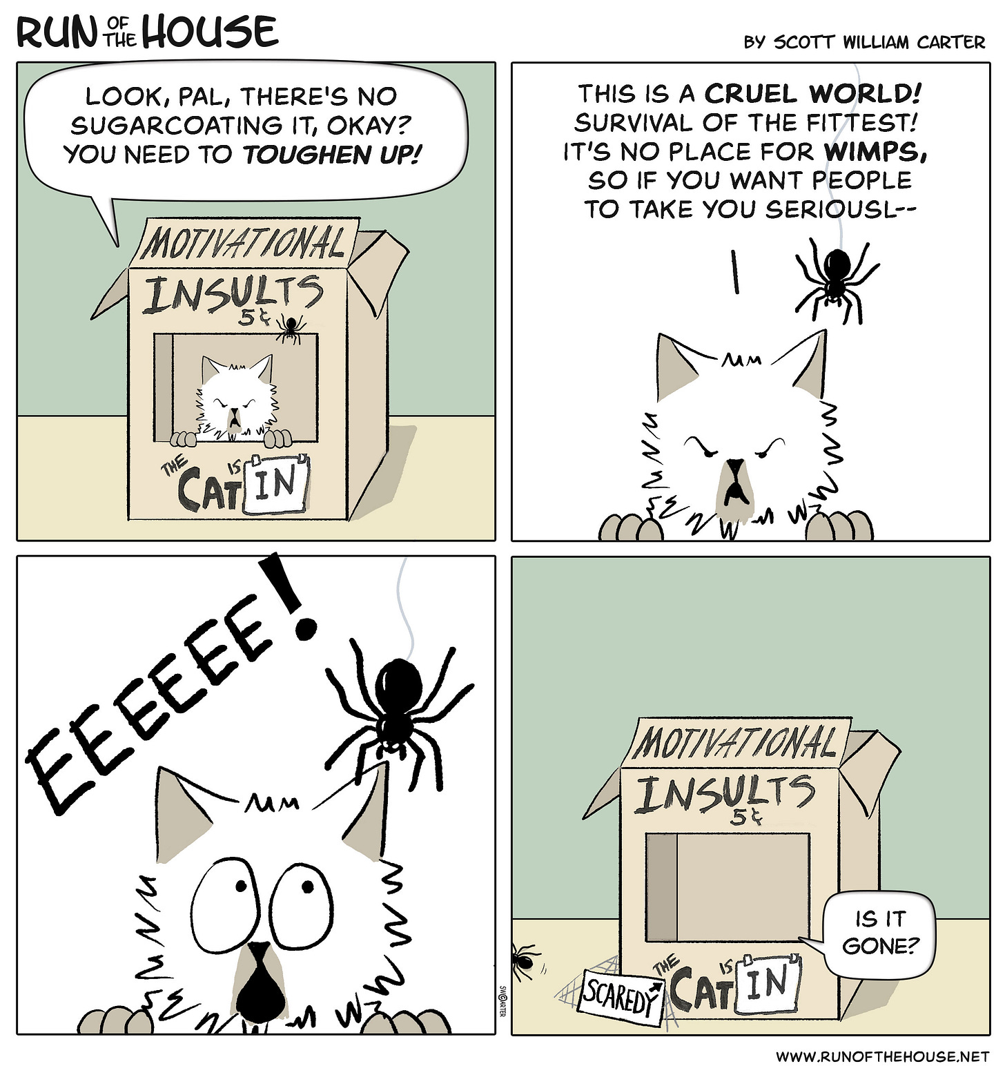 Hi, I’m Scott William Carter, author of cartoons, novels, short stories, and other things. If you’re receiving this by email, you’re either subscribed to the Run of the House cartoon strip, or it was forwarded to you. Previously published comics are available at www.runofthehouse.net.
