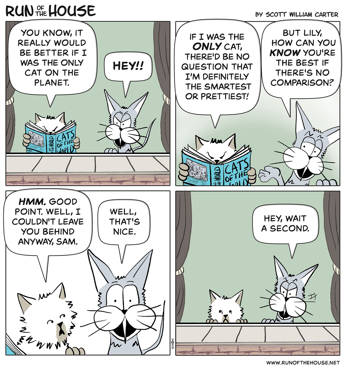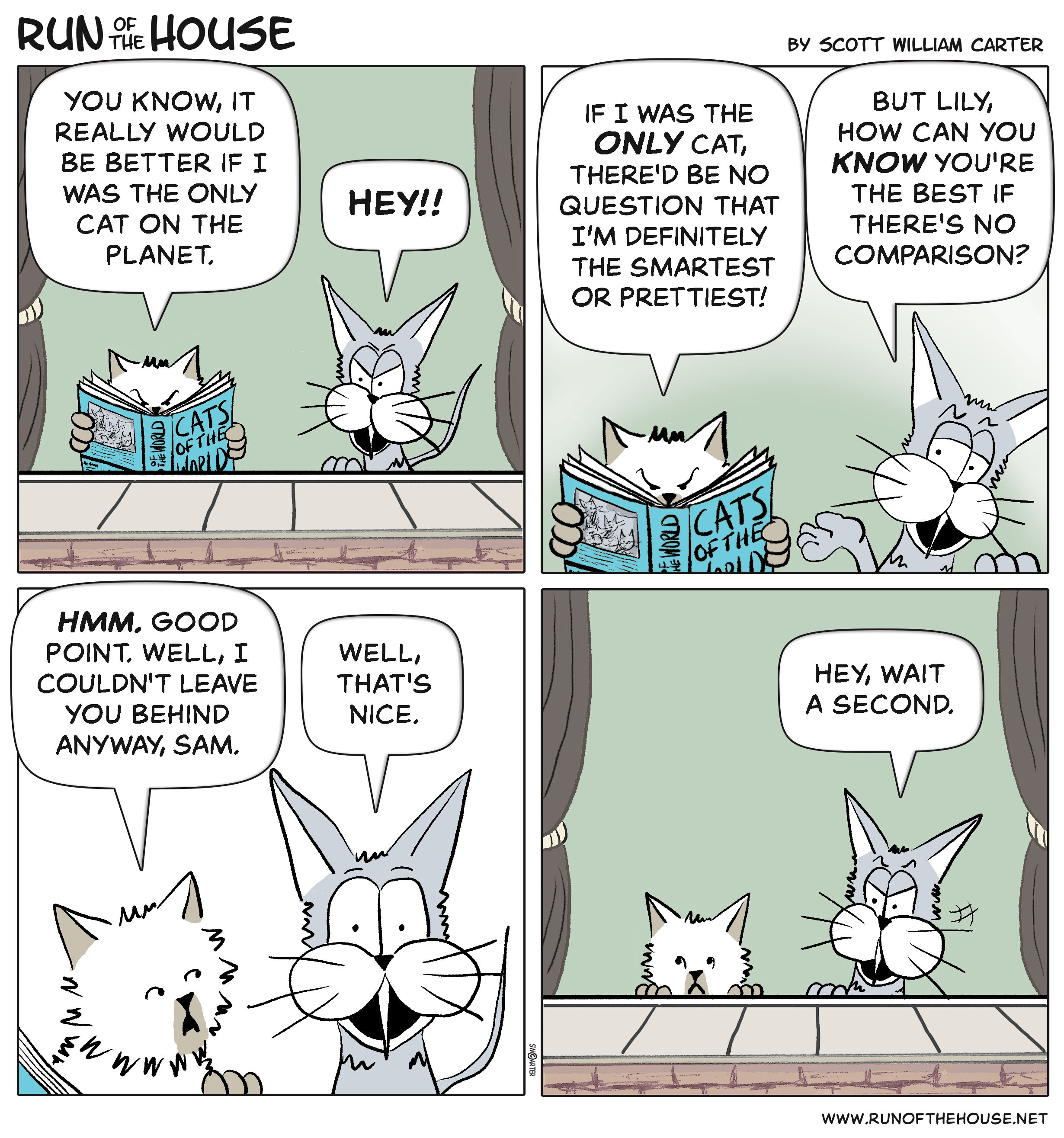 Hi, I’m Scott William Carter, author of cartoons, novels, short stories, and other things. If you’re receiving this by email, you’re either subscribed to the Run of the House cartoon strip, or it was forwarded to you. Previously published comics are available at www.runofthehouse.net.