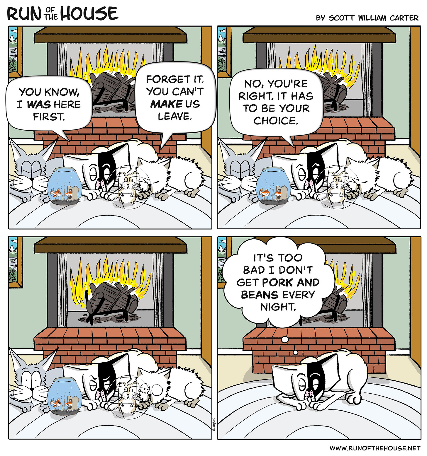 Hi, I’m Scott William Carter, author of cartoons, novels, short stories, and other things. If you’re receiving this by email, you’re either subscribed to the Run of the House cartoon strip, or it was forwarded to you. Previously published comics are available at www.runofthehouse.net.